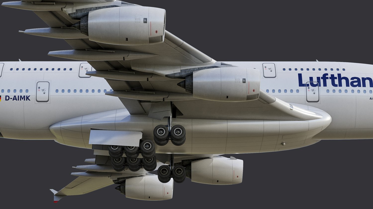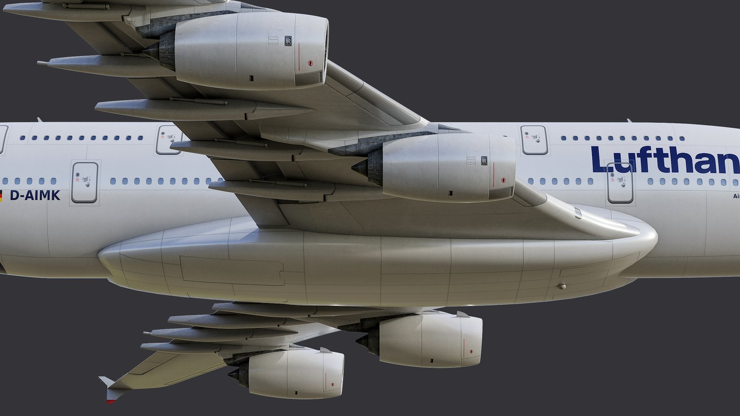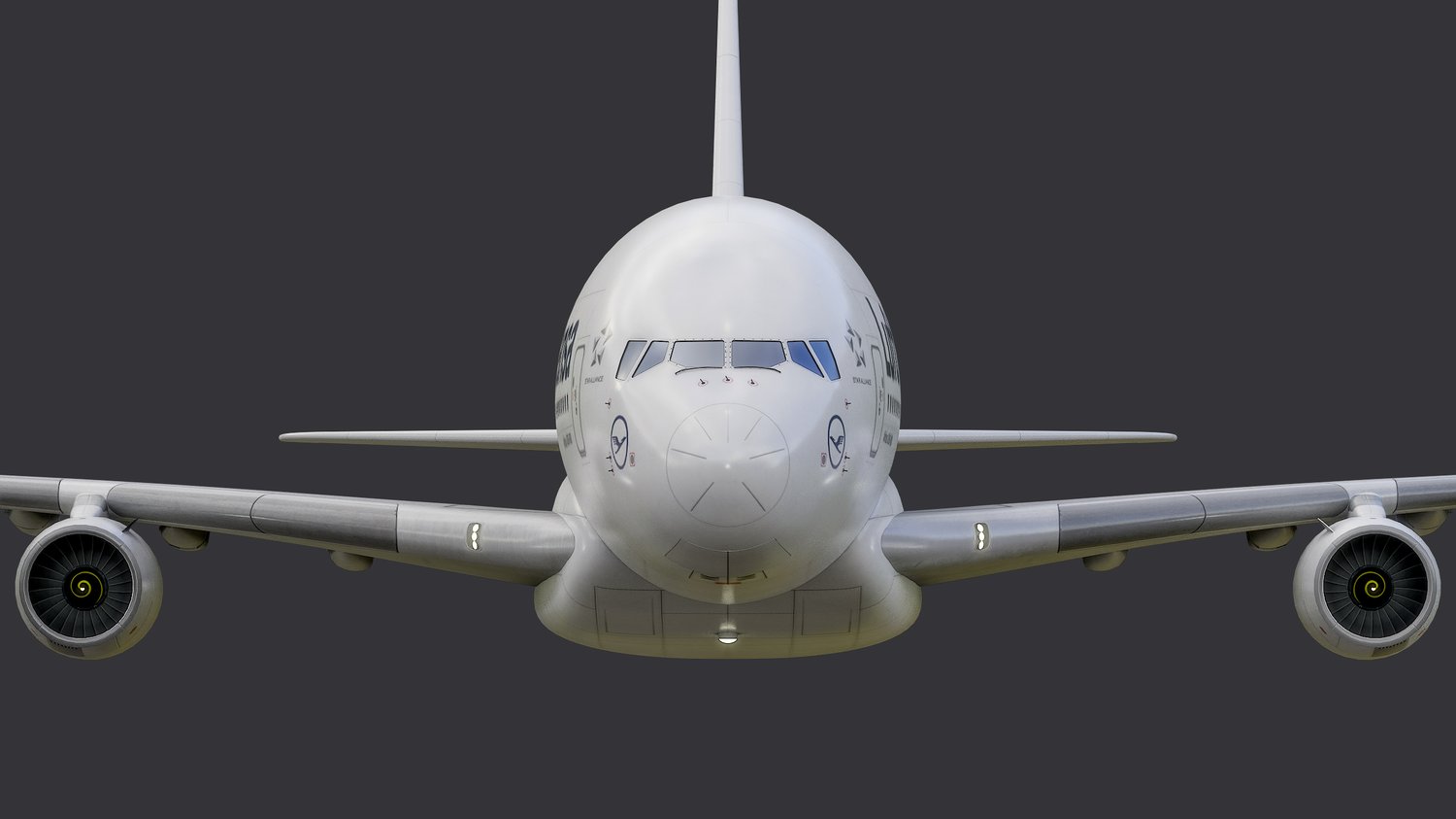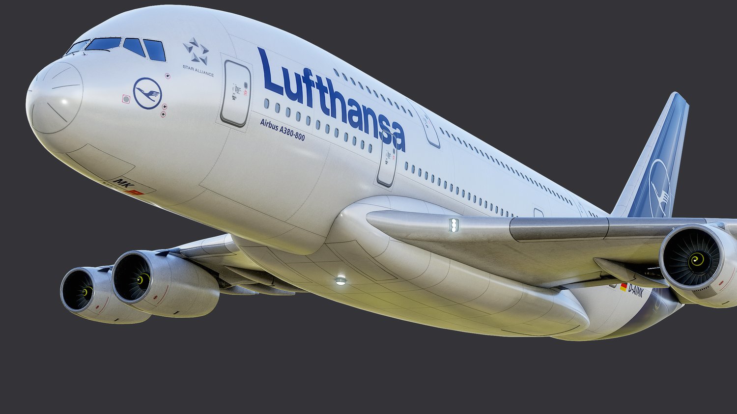 Animated Airbus A380-800 airliner exterior with present Lufthansa livery (2025). Pinpointed mesh reproduction, high fidelity livery, AAA render ready, day & night scenes ready, multiple animations included.