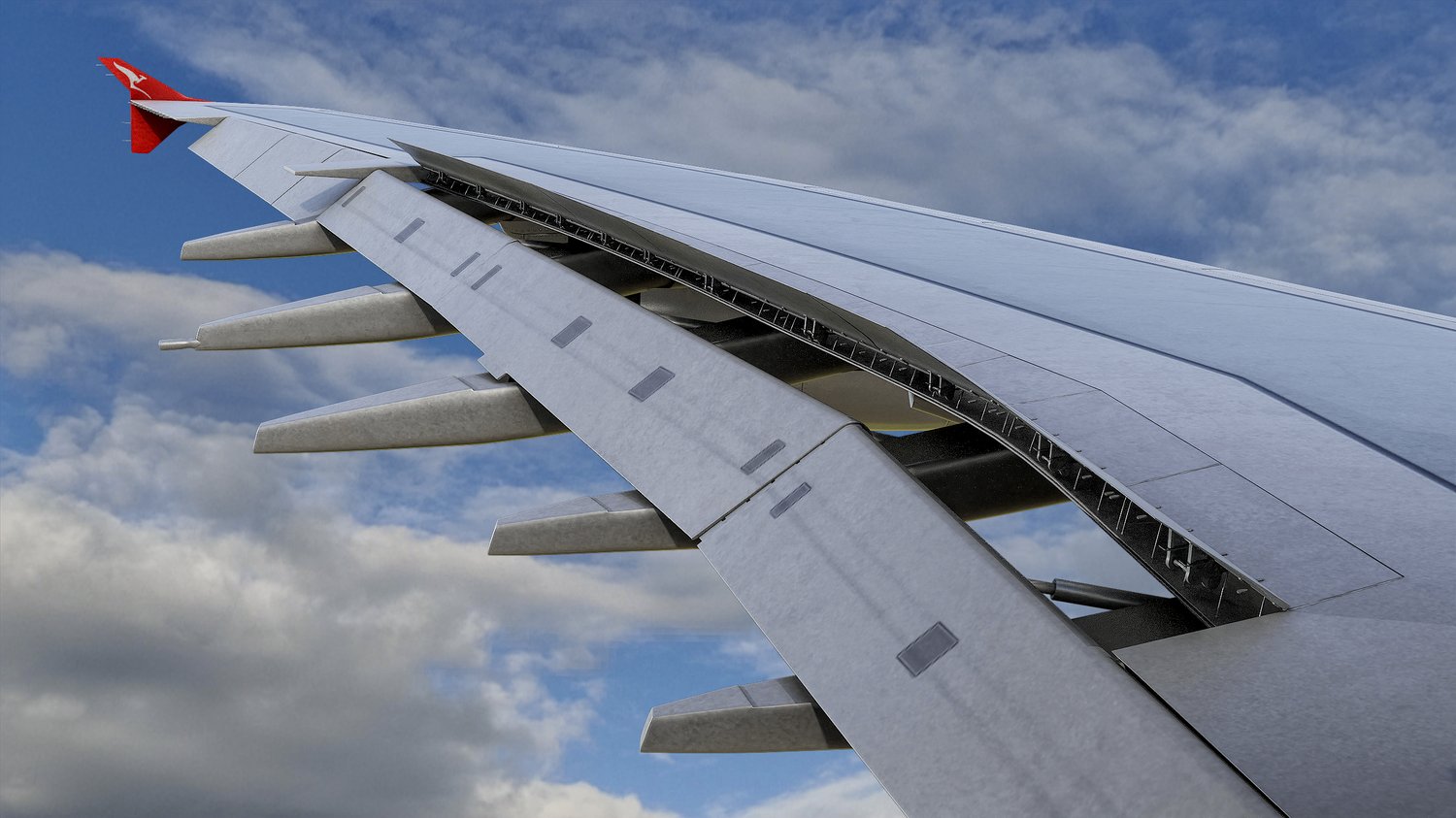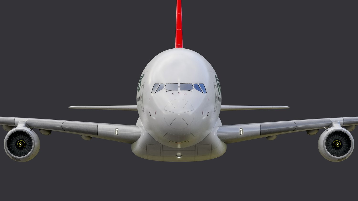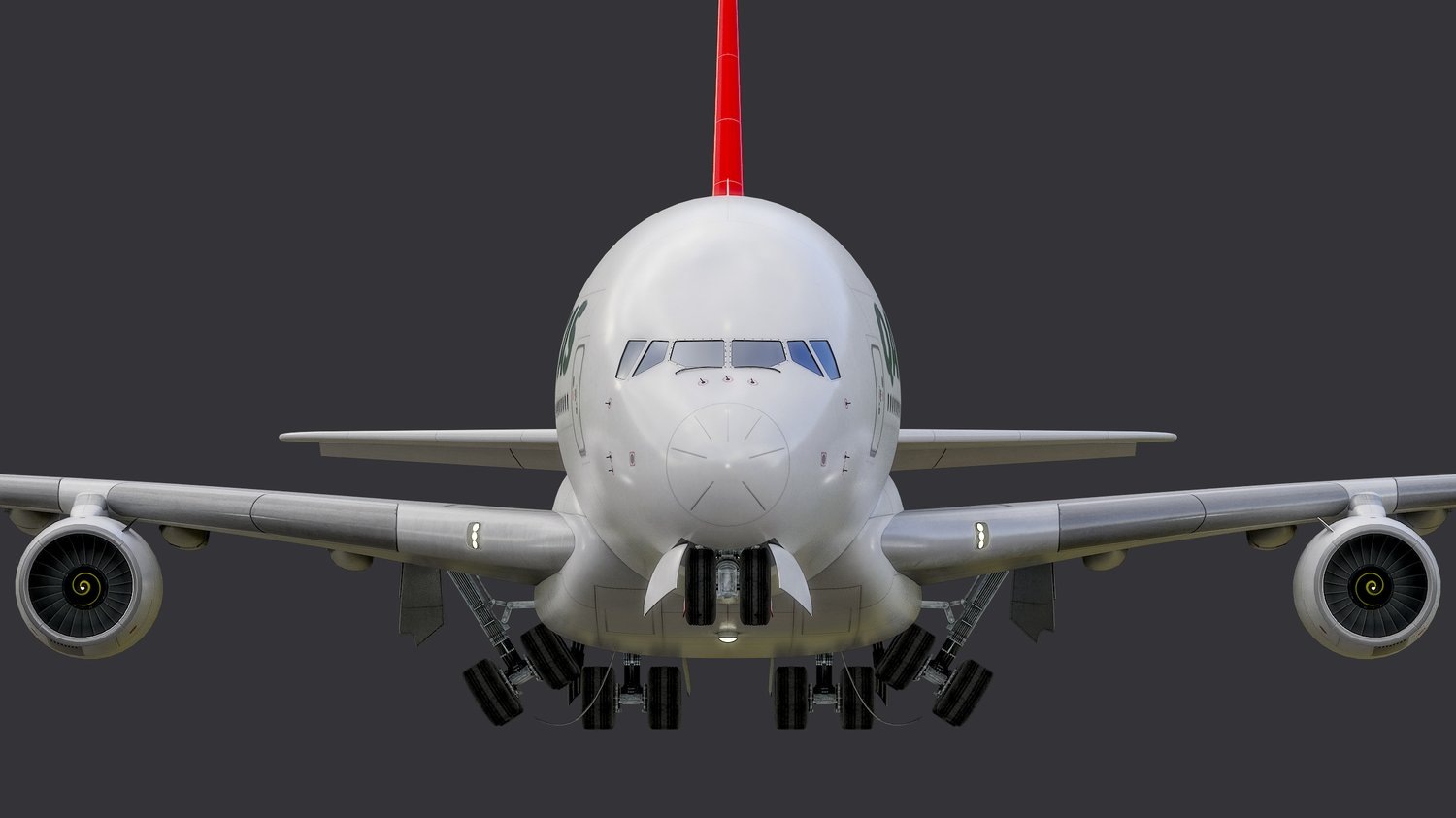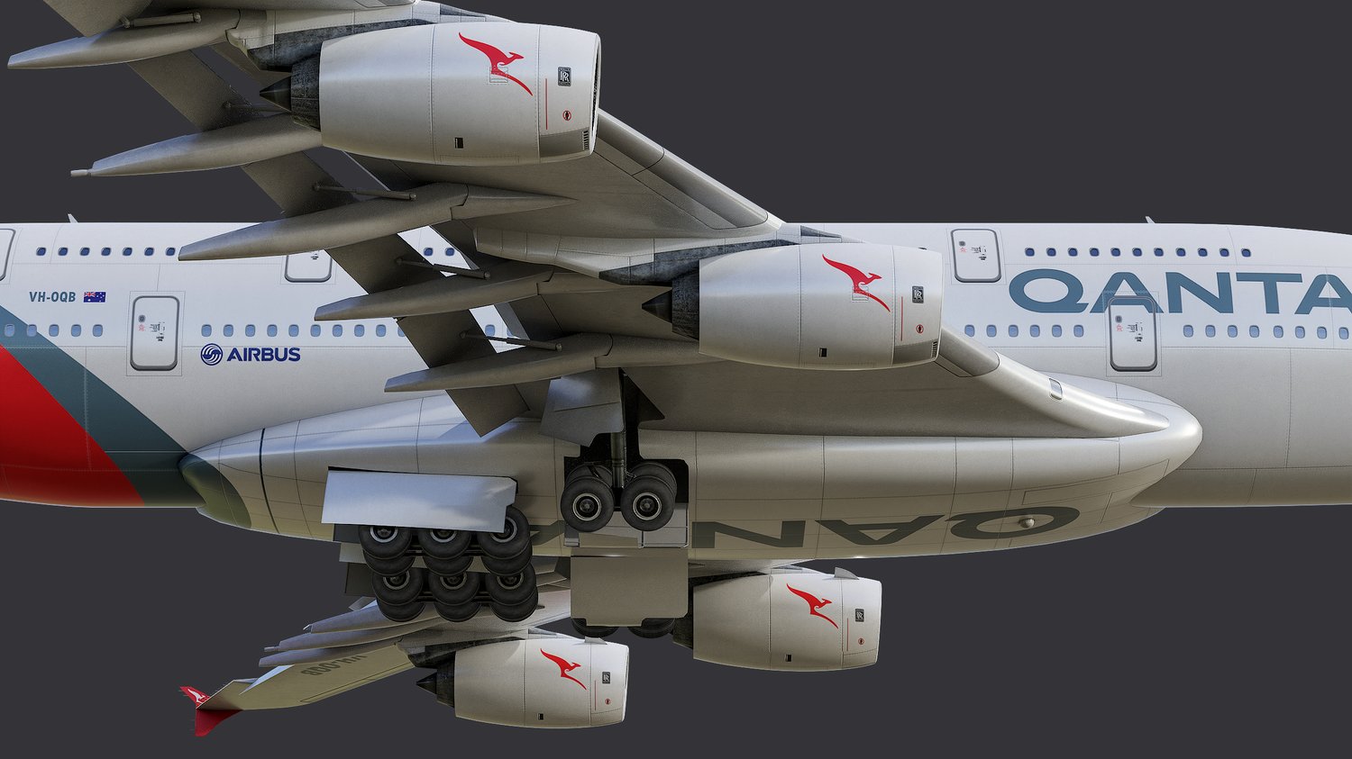 Animated Airbus A380-800 airliner exterior with present Qantas Airways livery (2025). Pinpointed mesh reproduction, high fidelity livery, AAA render ready, day & night scenes ready, multiple animations included.