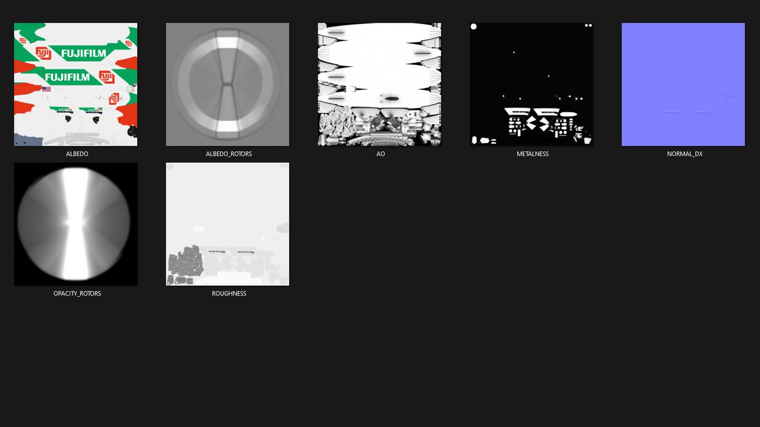 PBR metallic roughness ready with 7 x textures. The native texture resolution are 4096 x 4096 px for the airship blimp with fuselage, gondola, rudder, tail and engines, and 512 x 512 px for propellers.