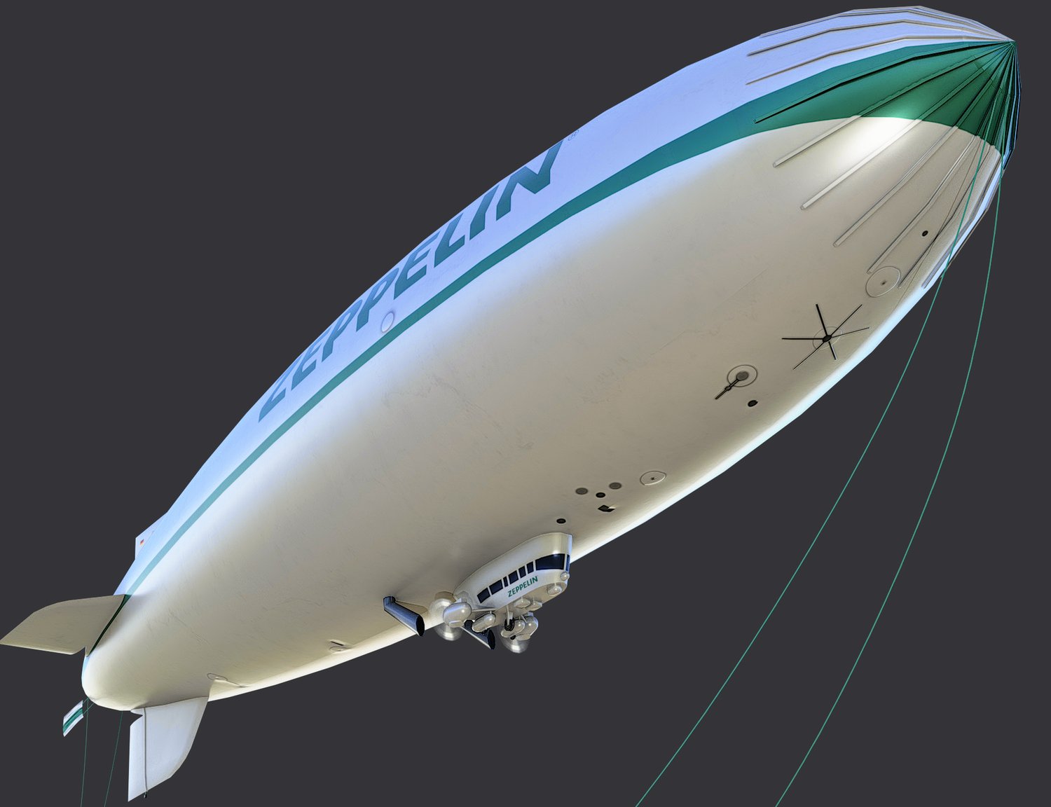 Clean and flawless lowpoly mesh made directly on a triangle-polygon base, complete and closed elements, no one-sided objects, flipped normals, multipolys or edge poles, carefully, manually pre-triangulated by hand, real world scale in meters. Fuselage, gondola, rudder, tail and engines are non-overlapping unwrapped on one layout. Propellers have an own layout. The asset has a complete triangle count of 4020 tris and a vertex count of 2431 verts.