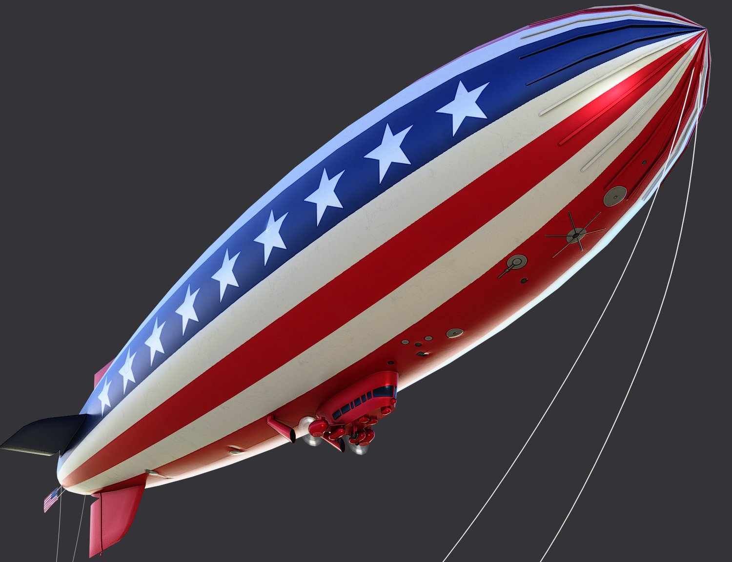 Animated Airship Blimp 6 - US Flag - Lowpoly PBR